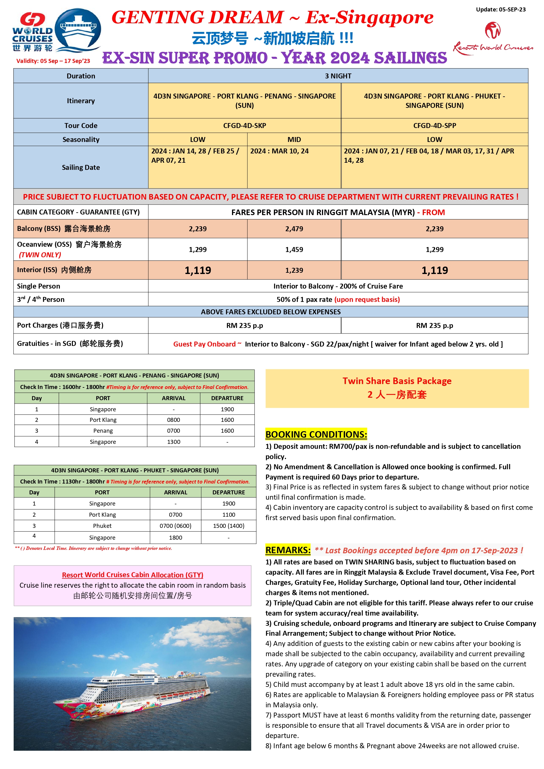 EX-SIN SUPER PROMO - YEAR 2024 SAILINGS!!